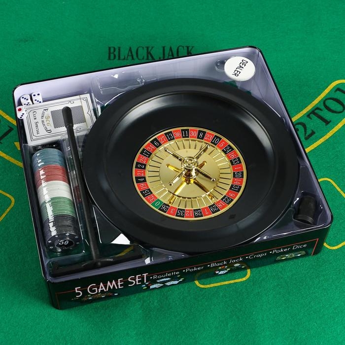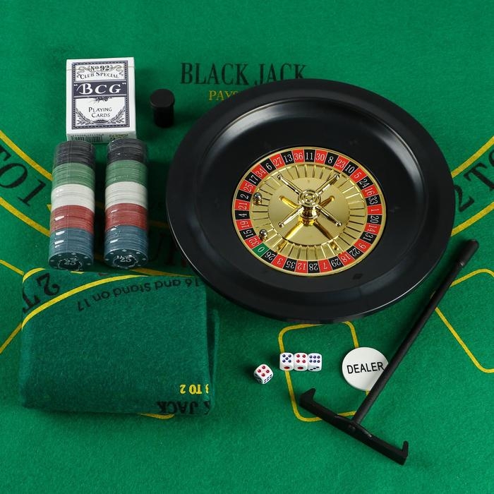 Покер, набор для игры, (рулетка, карты 54 шт, фишки с ном.100 шт,кубики 4 шт, поле) 33 х 29 с