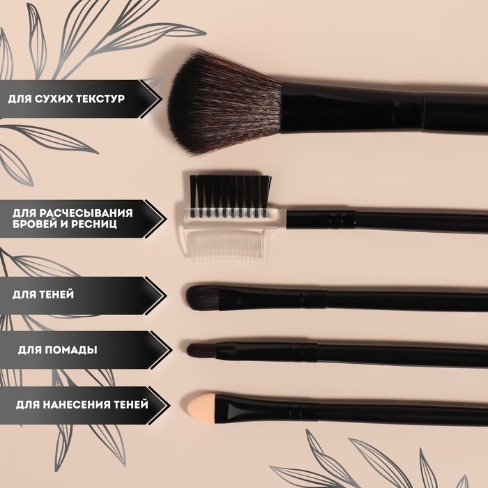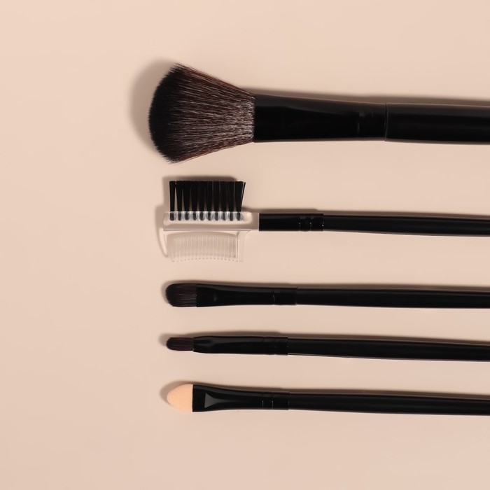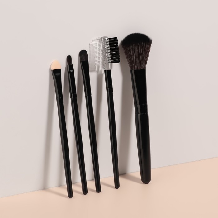 Набор кистей для макияжа, 5 предметов, PVC-чехол, цвет чёрный