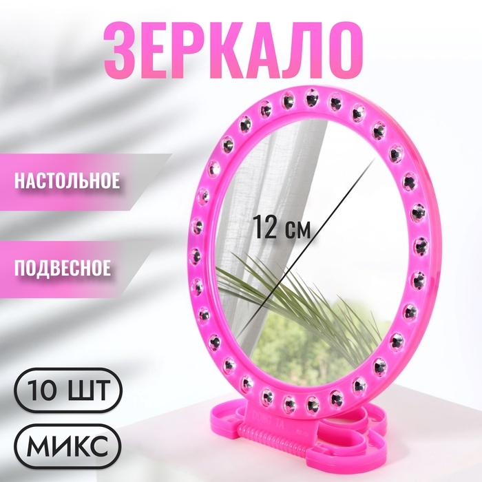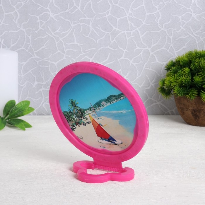 Зеркало настольное - подвесное «Круг», с рамкой под фотографию, d зеркальной поверхности 12 см, фасовка 10 шт, цвет МИКС