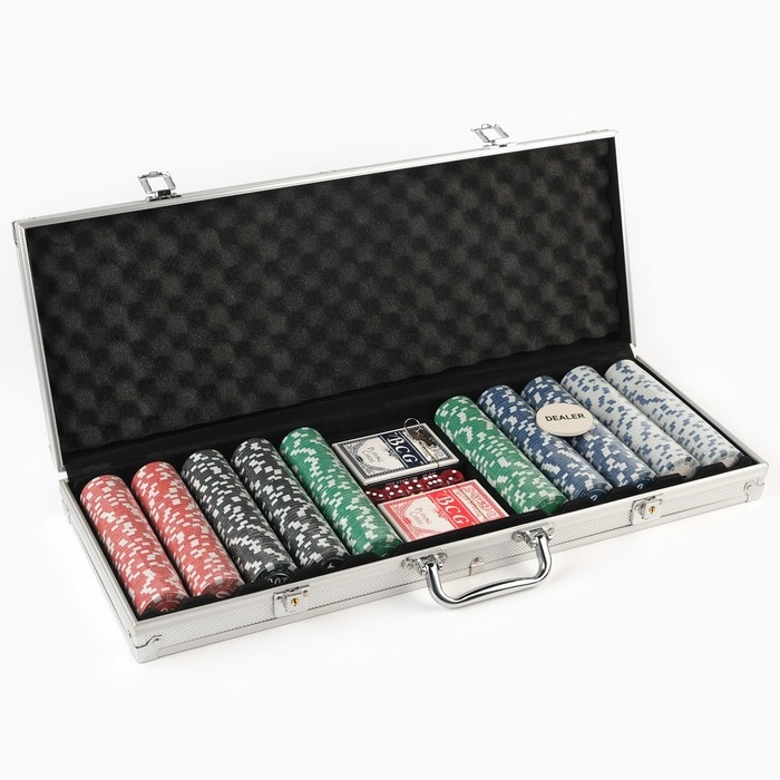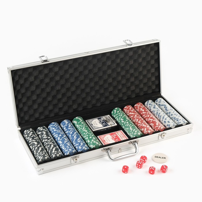 Покер в металлическом кейсе (2 колоды, фишки 500 шт с/номиналом, 5 кубиков), 20.5 х 56 см