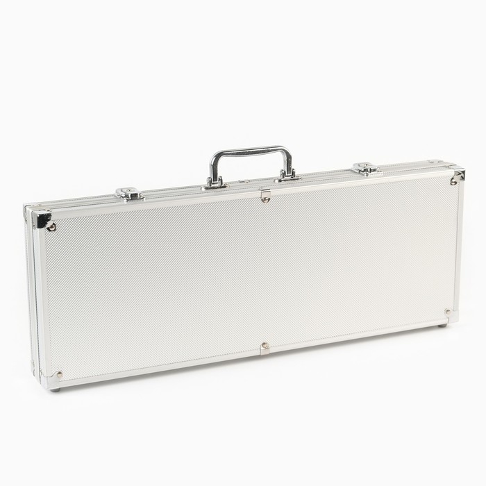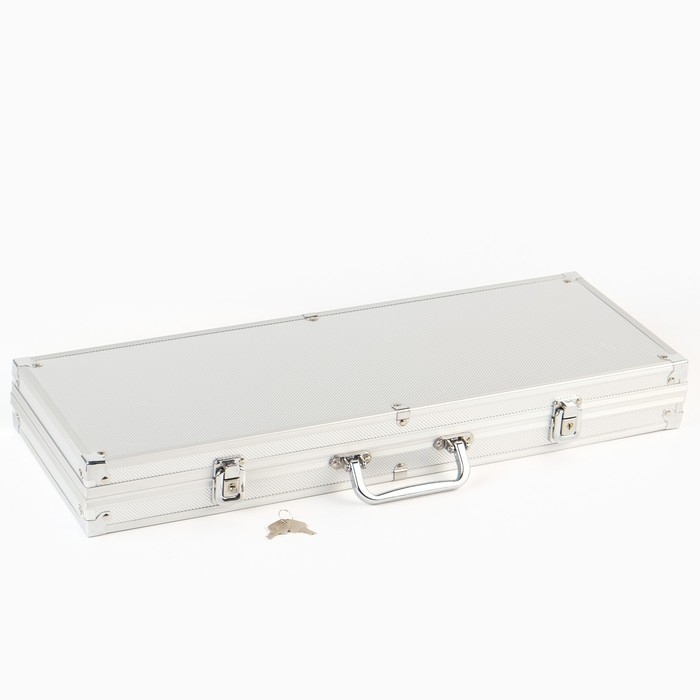 Набор в металлическом кейсе прекрасно подойдет для небольшой компании. Такой кейс удобно брать с собой — на вечеринку, на дачу, на пикник, в гости. Он закрывается на ключ, а значит, ни одна фишка из игры не потеряется в дороге. Пластиковые карты, фишки и внушительного вида кейс придают игре особую атмосферу.