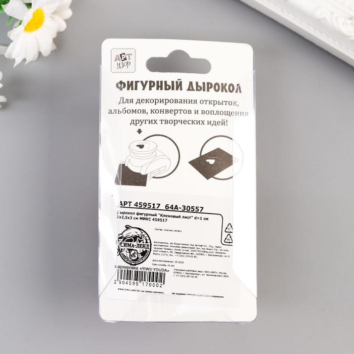Дырокол фигурный "Кленовый лист" d=1 см 3х2,5х3 см МИКС