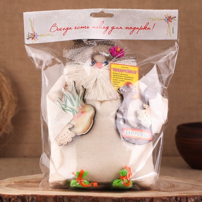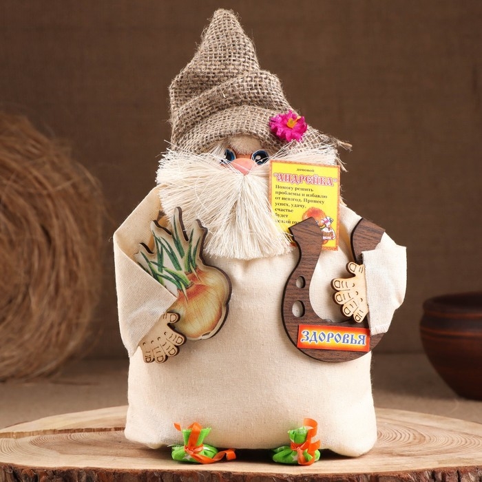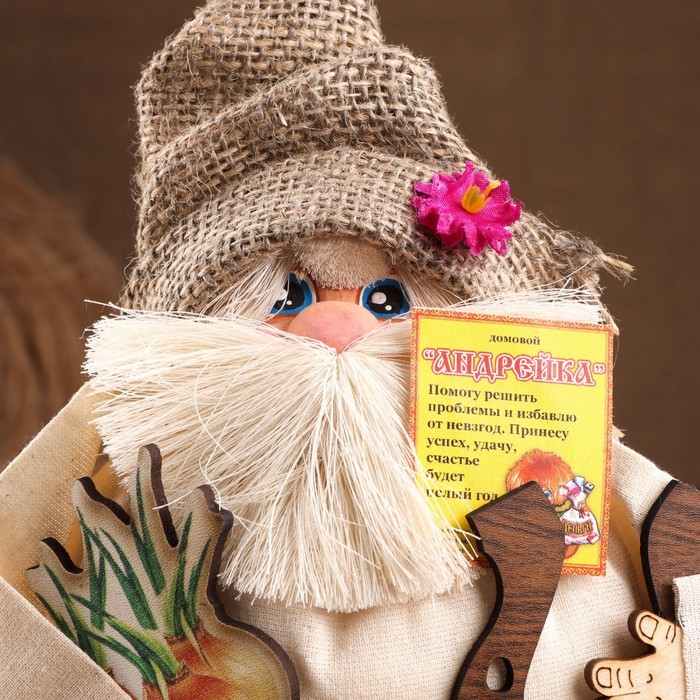 Оберег-домовой "Андрейка в соломенной шляпе, с луком и подковой", 20х18х12 см МИКС