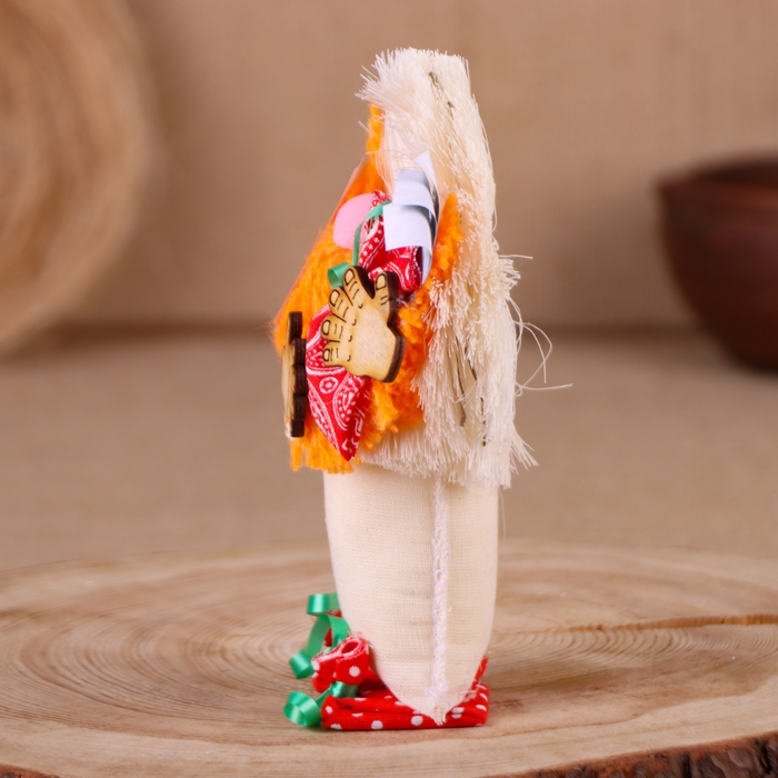 Оберег-домовой "Славуся в льняном колпаке, с ложкой и подковой", микс