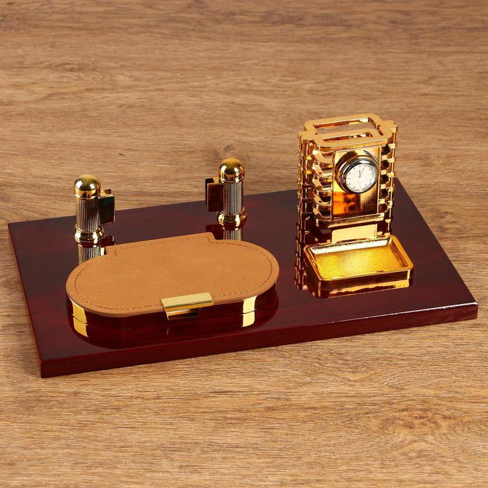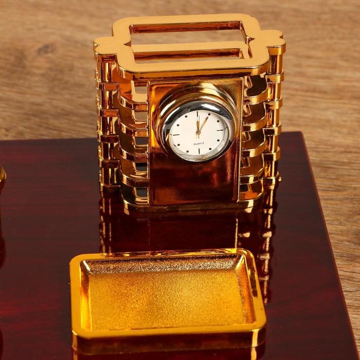 Набор настольный 5в1 с часами, вишня
