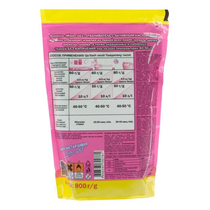 Отбеливатель Mister Dez, порошок, для тканей, кислородный, 800 г