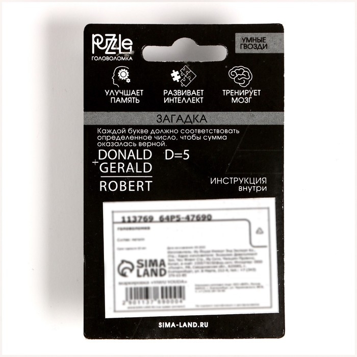 Головоломка Игры разума «Умные гвозди» №11,на блистере