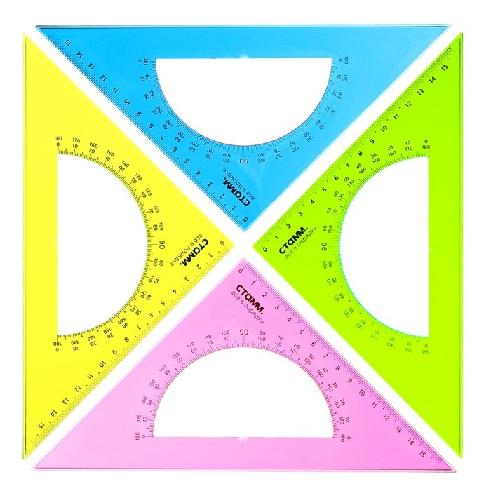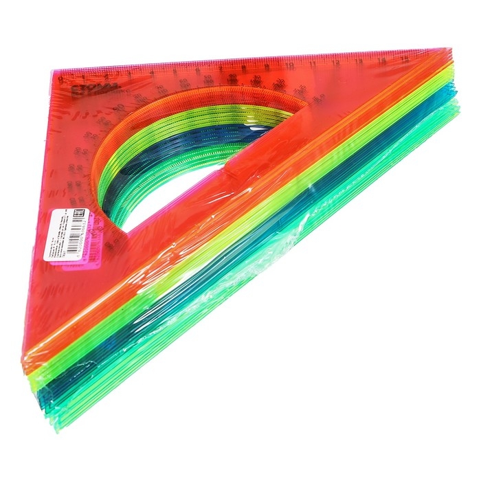 Треугольник «Neon Crystal» с транспортиром – незаменим для чертёжных и измерительных работ. Угол изделия – 45°, длина шкалы – 16 см. Треугольник имеет чёткую напечатанную миллиметровую шкалу и гладкую глянцевую поверхность. Представлен в неоновых цветах ассорти.