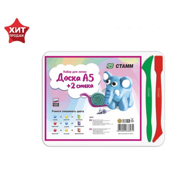 Доска для лепки Стамм, А4 + 2 стека, пластиковая, белая