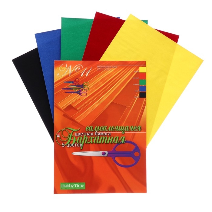 Бумага цветная 5 листов, 5 цветов А4, бархатная самоклеящаяся №11