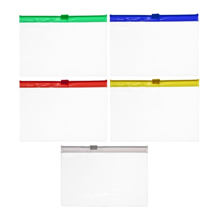 Набор Папка-конверт на молнии формат 5 штук, 5 цветов, А6, 120 мкр, прозрачная, молния 13 х 9см