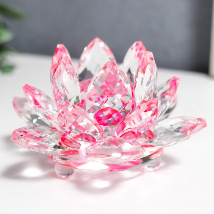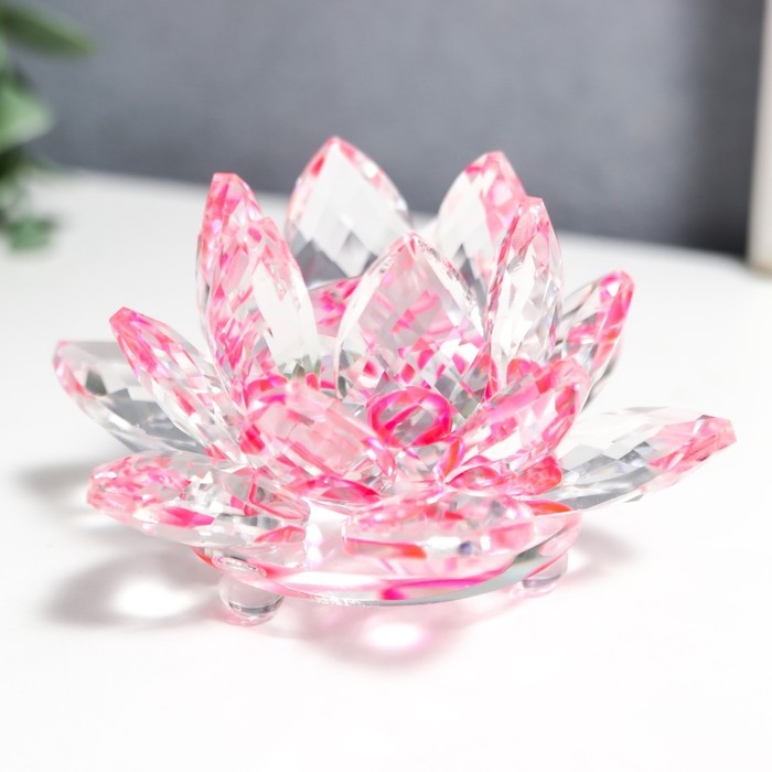 Сувенир стекло "Розовый лотос на подставке" вращается 5,5х9х9 см