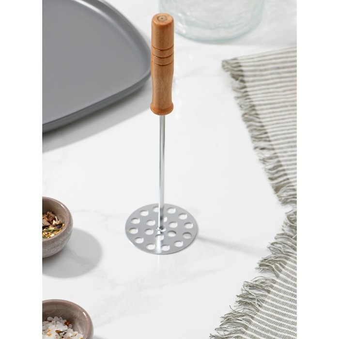Толкушка «Картофелемялка», 24,5×4,5 см, диаметр рабочей части 3,5 см, бук
