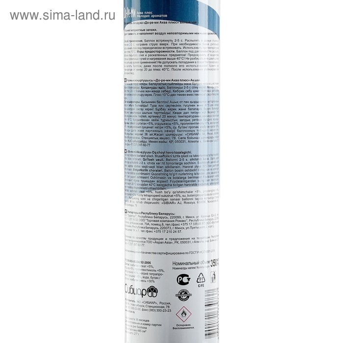 Способ применения: баллон встряхнуть в течение 3-5 секунд. Направляя распылитель вверх, равномерно распылить средство в помещении.