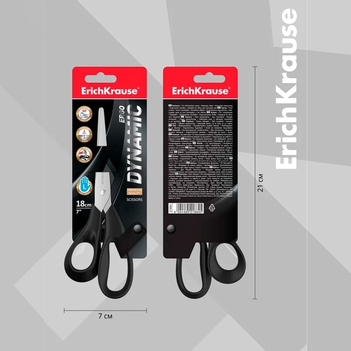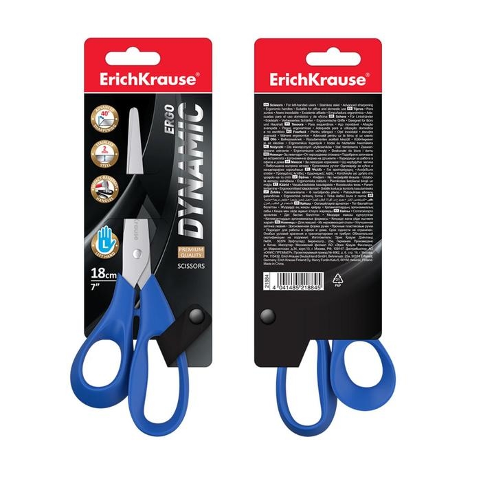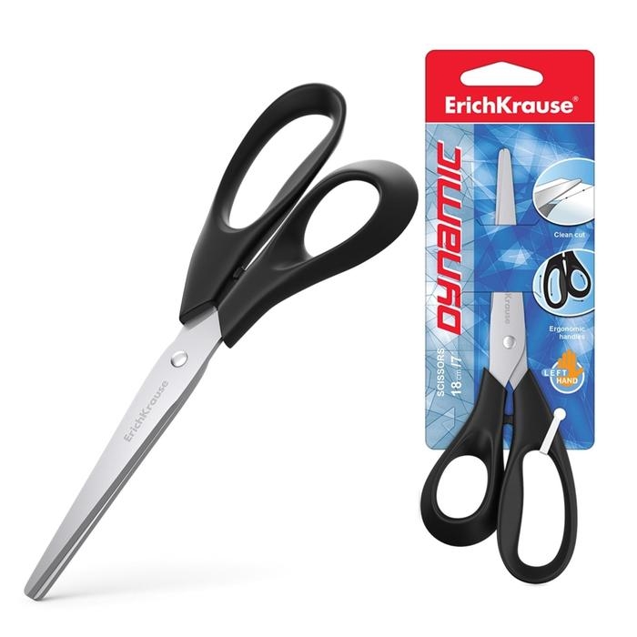 Ножницы для левшей, 18 см, ErichKrause Dynamic, увеличенная толщина лезвий, МИКС