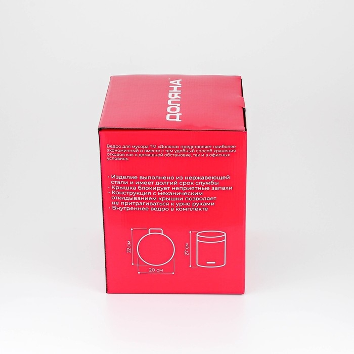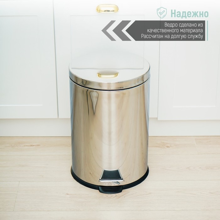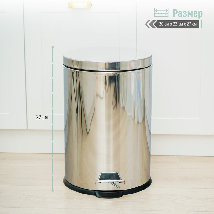 Ведро мусорное с педалью Доляна, 5 л, нержавеющая сталь, цвет хромированный