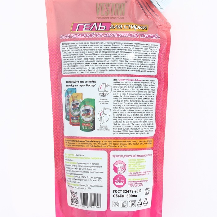 Жидкое средство для стирки "Вестар", для деликатных тканей, 500 мл