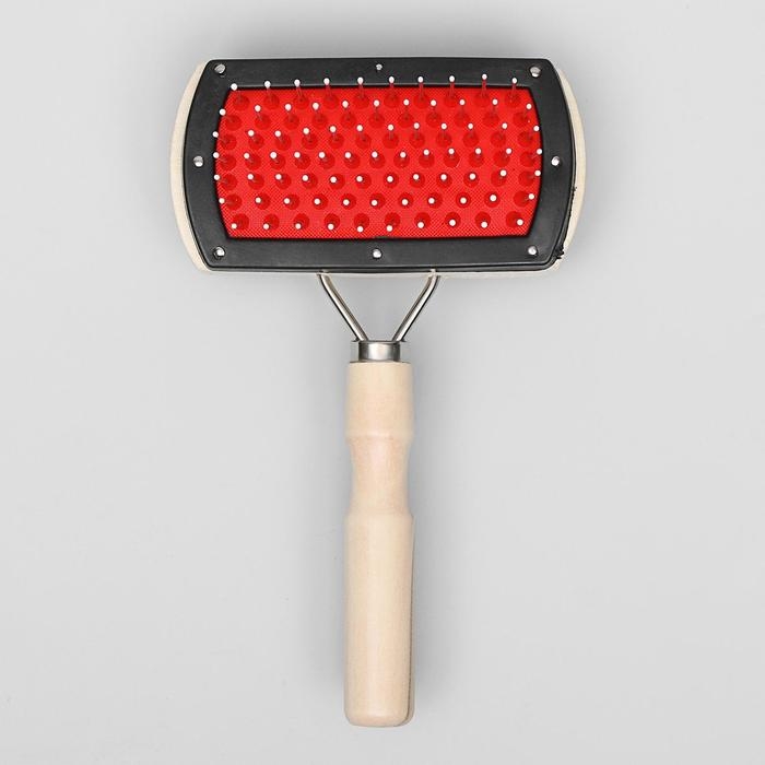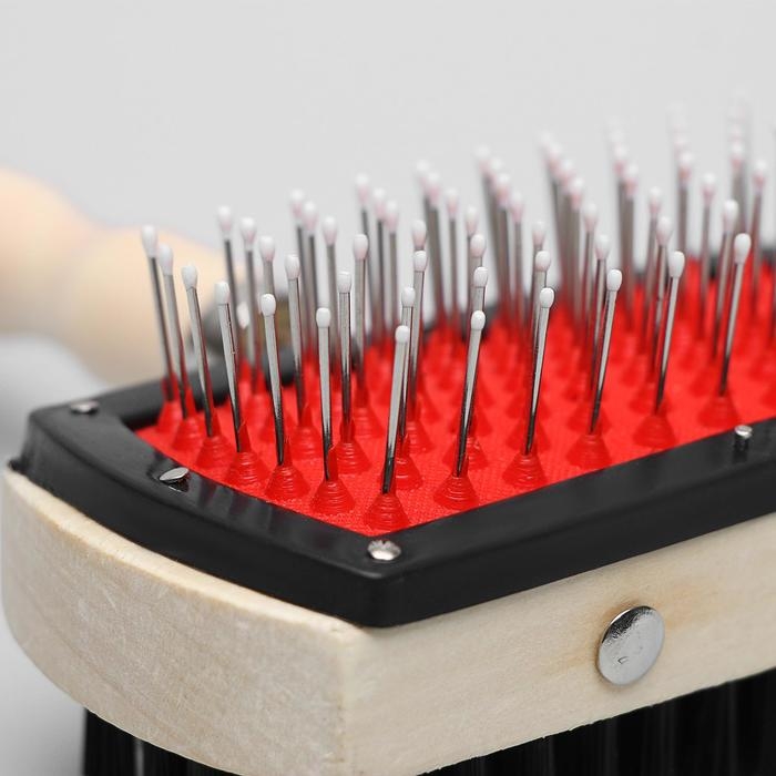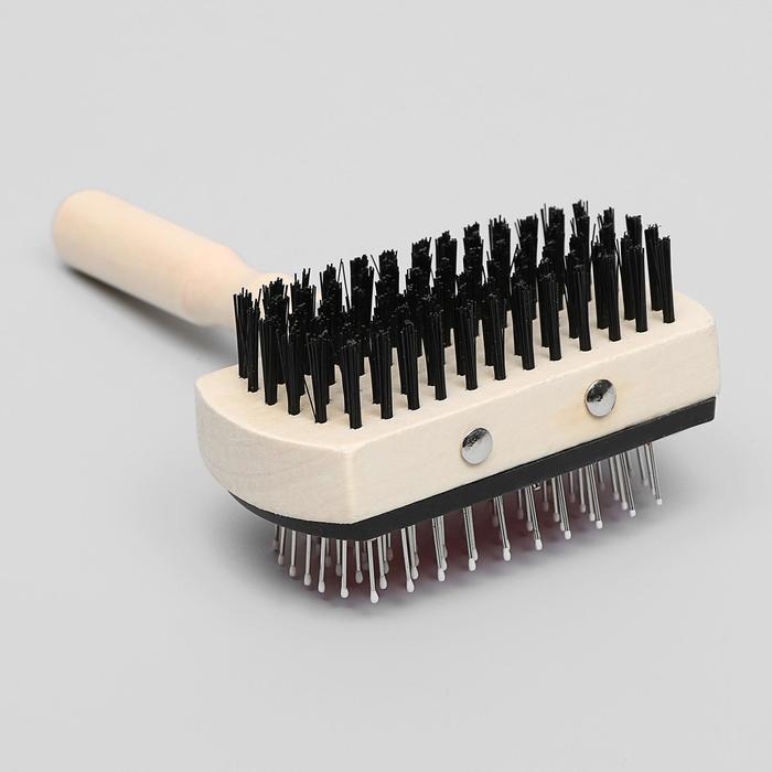 Двусторонняя щётка-расческа с деревянной ручкой, 10 Х 17 см