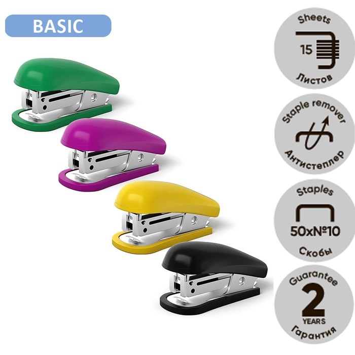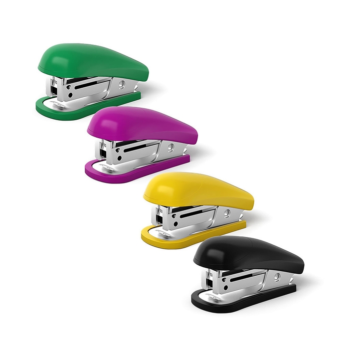 Мини-степлер со встроенным антистеплером изготовлен из ударопрочного пластика с высококачественным стальным механизмом.