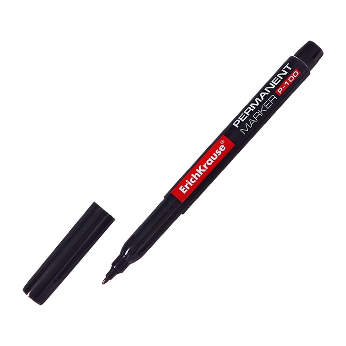 Маркер перманентный ErichKrause P-100, 0.5-1.2 мм, чернила на спиртовой основе светостойкие, водостойкие без ксилола, чёрный
