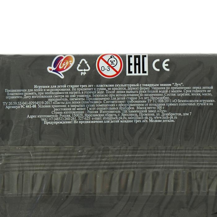 Пластилин скульптурный серый, 500 г "Луч" De Luxe