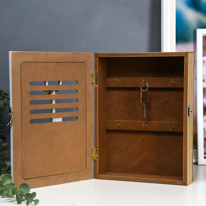 Ключница дерево 6 крючков "Ключик с тесьмой" 26х19,5х5,3 см