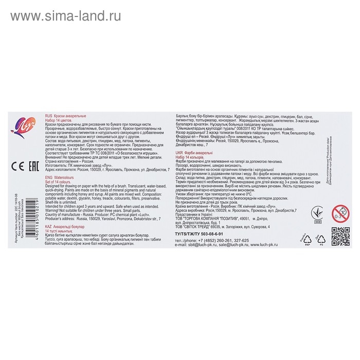 Краски акварельные Zоо медовые полусухие изготовлены на основе органических пигментов и пчелиного мёда. Акварель соответствуют европейским директивам безопасности.