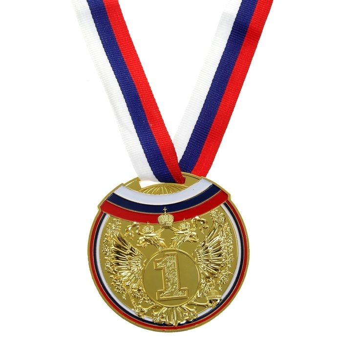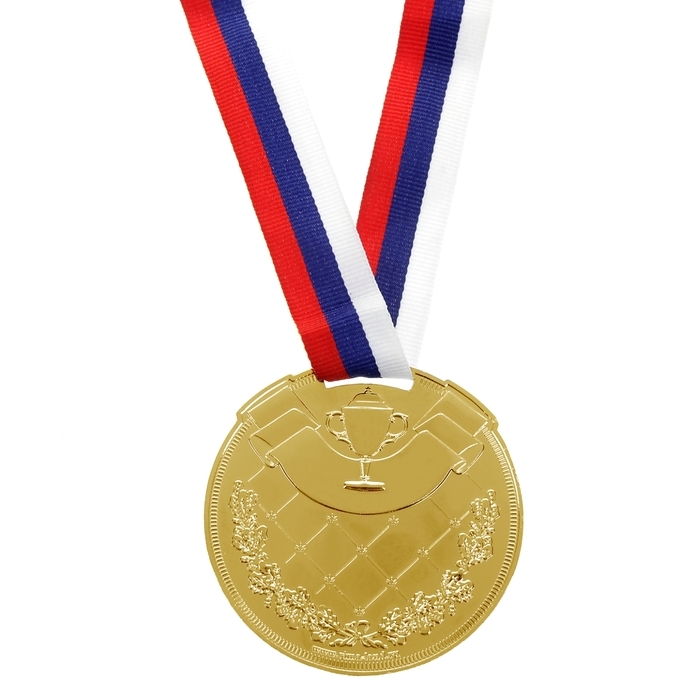 Медаль призовая 014, d= 7 см. 1 место, триколор. Цвет золото. С лентой