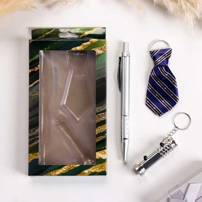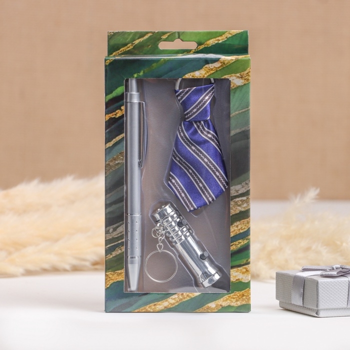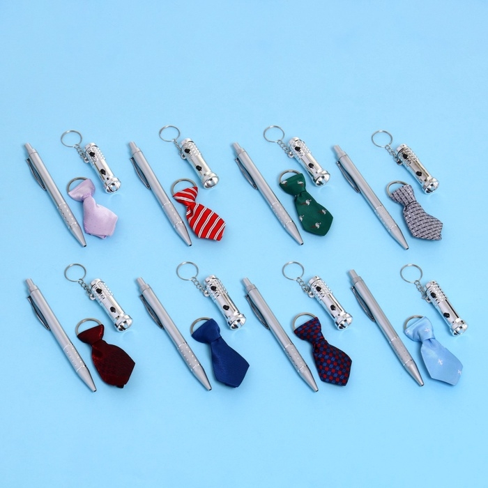 Набор подарочный 3в1 (ручка, брелок-галстук, фонарик) микс