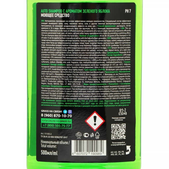 Автошампунь Grass Universal яблоко, контактный, 500 мл
