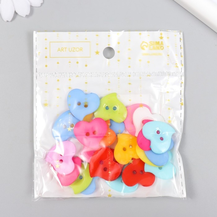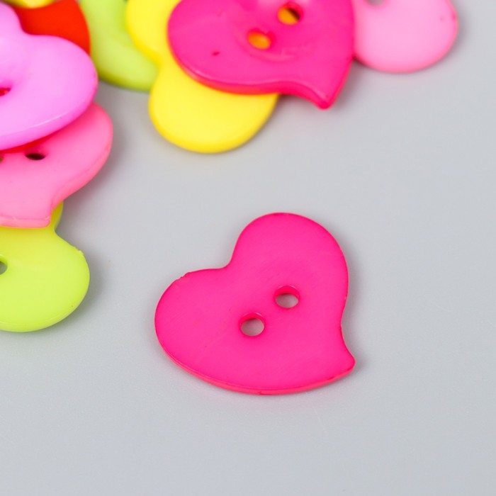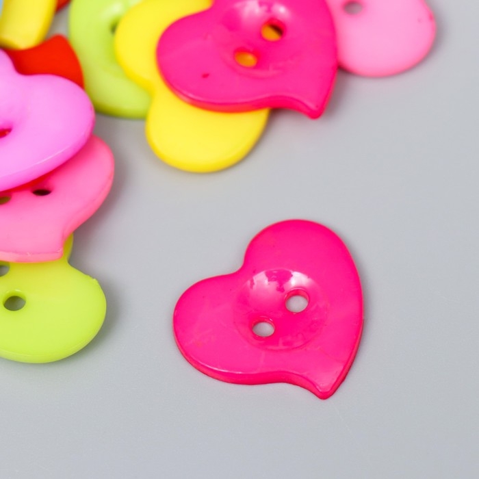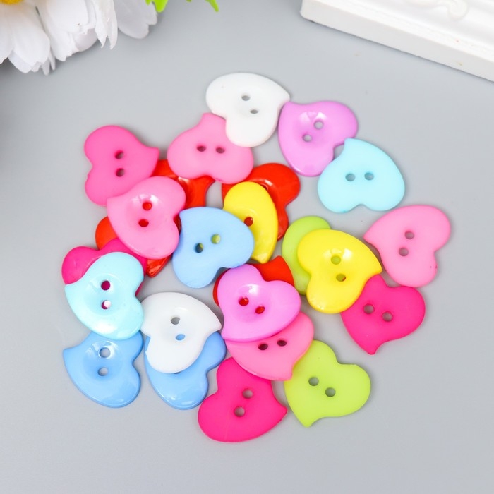 Набор пуговиц декоративные пластик "Сердечки цветные" (набор 24 шт) 2,2х2,2 см