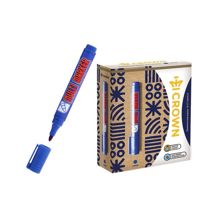 Маркер перманентный 3.0 мм, Crown Multi Marker, пулевидный, синий