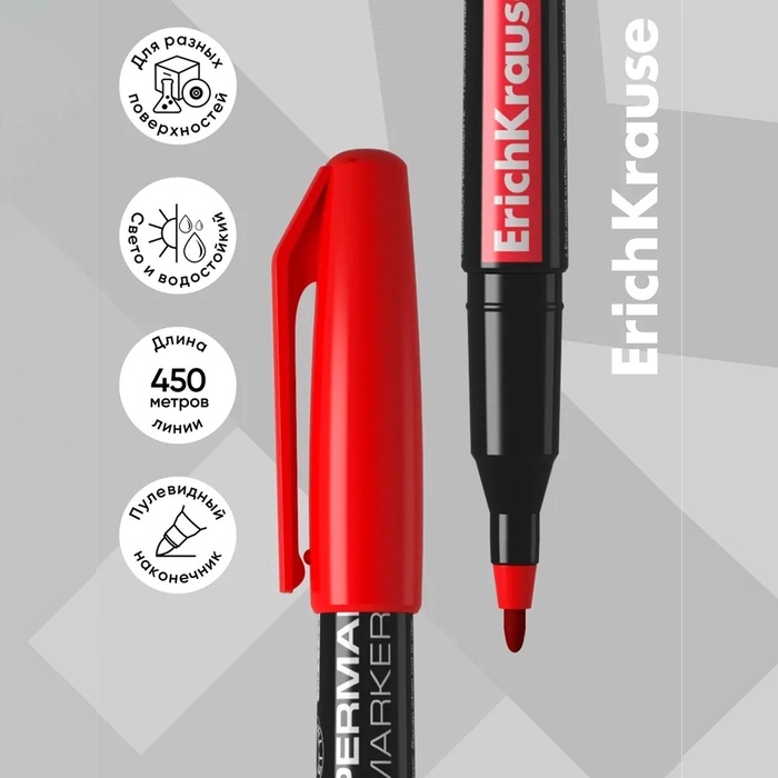 Маркер перманентный 0.5-4.6 мм Erich Krause P-500 чёрный, наконечник скошенный, чернила на спиртовой основе светостойкие, водостойкие без ксилола