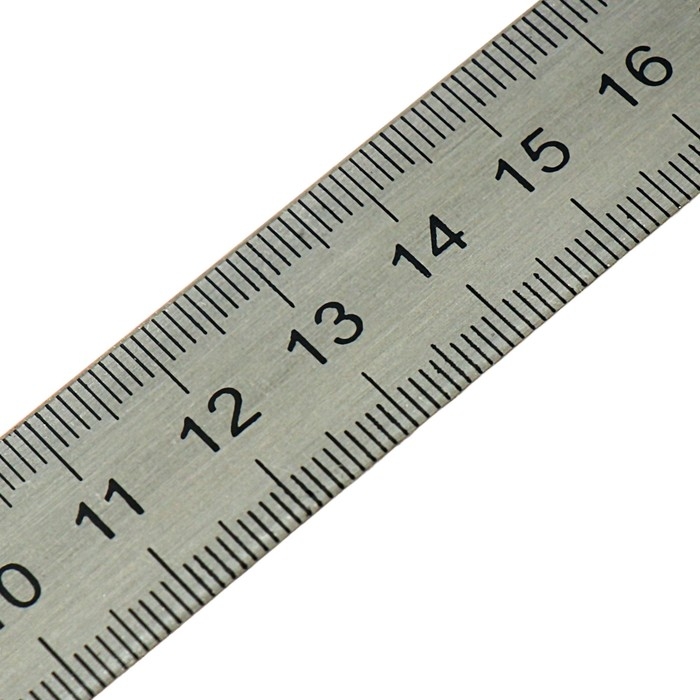 Прочная металлическая линейка выполнена из пружинистой нержавеющей стали, устойчивая к коррозии. Линейка двусторонняя и имеет две шкалы на каждой стороне. Разметка чёткая нанесена на металлическое основание методом гравировки, поэтому не стирается и остаётся читаемой даже после длительной эксплуатации.