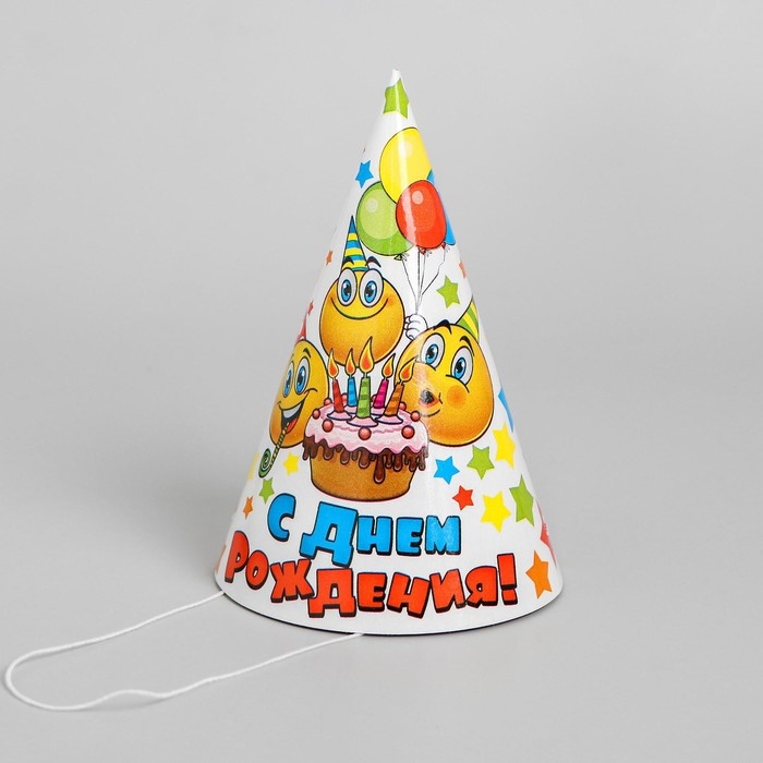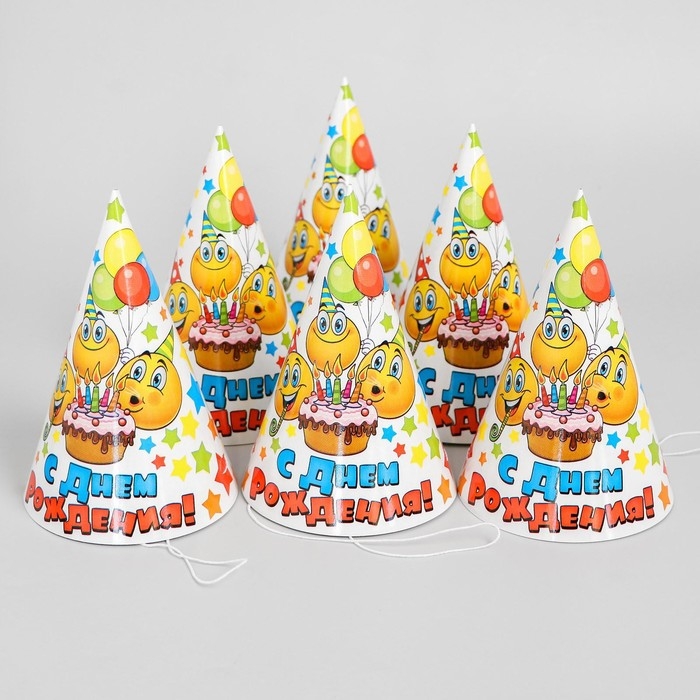 Колпак бумажный «С днём рождения», набор 6 шт., 16 см