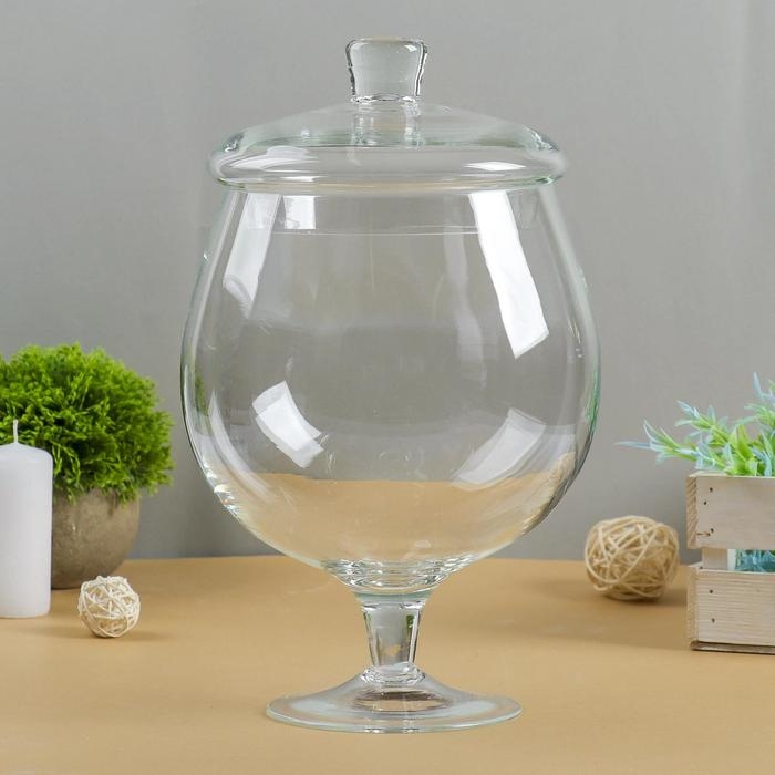 Ваза "Бренди" бокал на ножке 3л d-14см, h-24см,(б/крышки) h-30см(с крышкой) прозрачная
