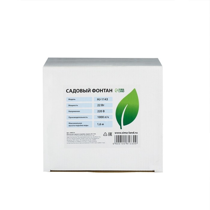 Фонтан садовый HJ-1143, 22 Вт, h = 1.6 м, 1000 л/ч, шнур 5 м
