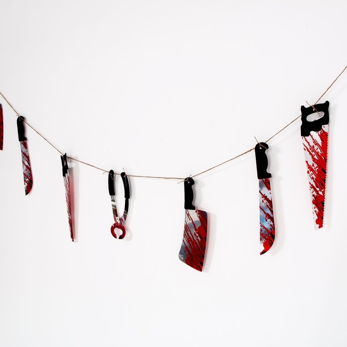 Гирлянда «Страшные инструменты» поможет украсить дом к этому празднику. Символичный аксессуар добавит мистики и таинственности дню нечистой силы, и превратит любое помещение в ужасающий уголок, полный магических существ. Развесьте такую гирлянду с кровавыми инструментами на стенах или по шторам и устройте незабываемый праздник в эту ночь!