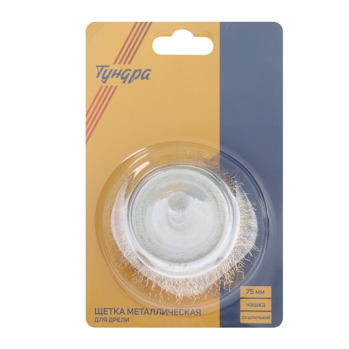 Щетка металлическая для дрели ТУНДРА, со шпилькой, "чашка", 75 мм