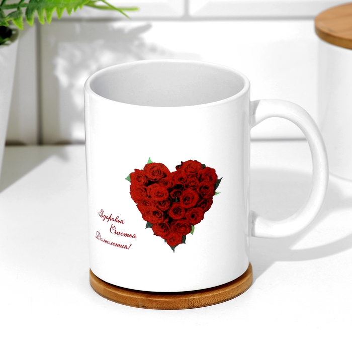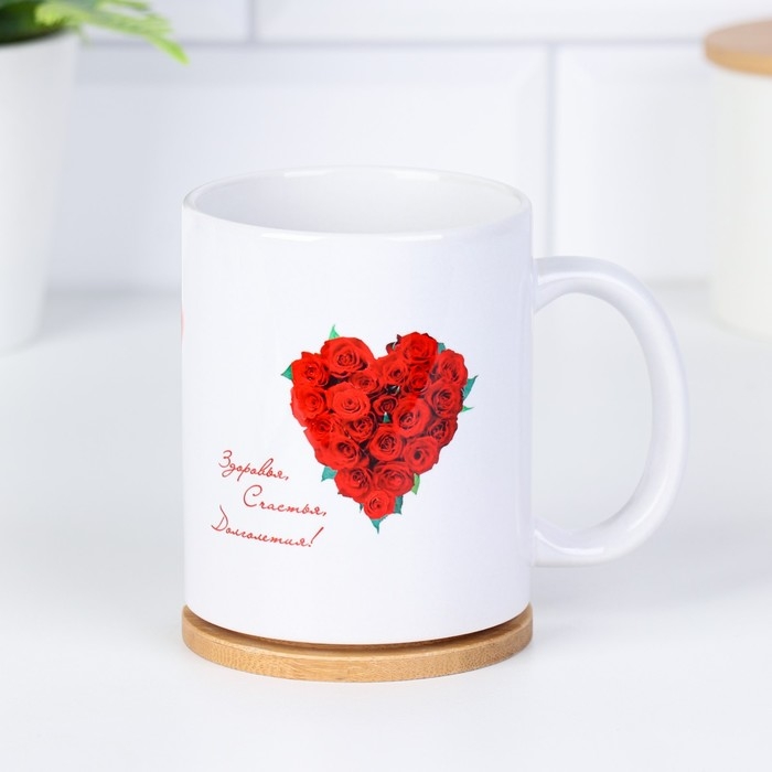 Кружка изготовлена из керамики. Рисунок нанесён методом сублимации, при котором краска проникает в верхний слой изделия, поэтому изображение получается стойким.