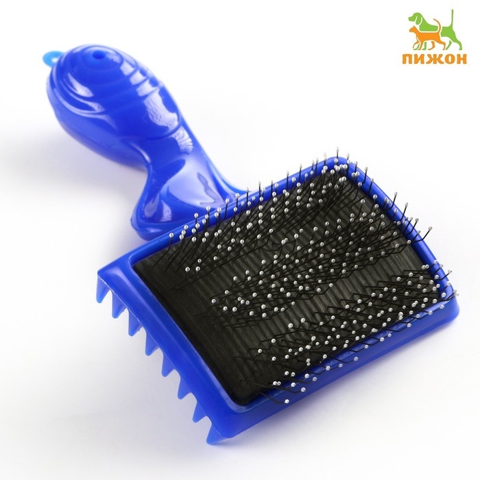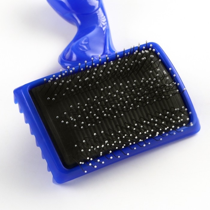 Для здоровья животного очень важно вычёсывать у него отмершие шерстинки с помощью Щётка - пуходёрка трёхрядная с каплями, основание 84 х 58 мм, синяя. Она не повреждает здоровые остевые волосы. Имеет длинные, тонкие металлические зубцы, загнутые на конце.