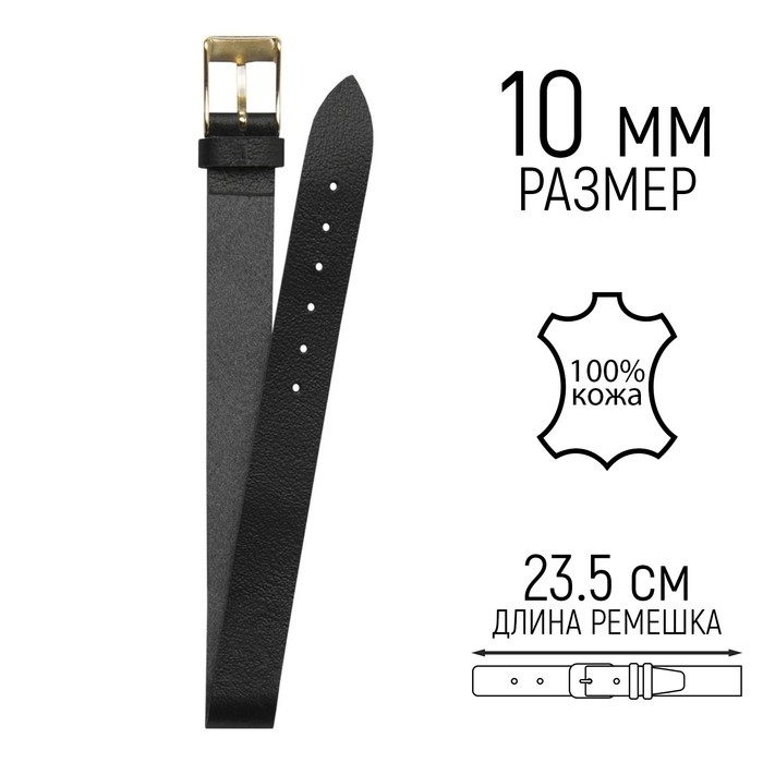 Ремешок для часов, женский, 10 мм, натуральная кожа, чёрный