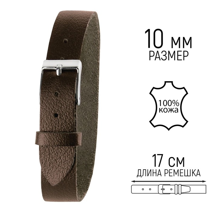 Ремешок для часов, женский, 10 мм, натуральная кожа, коричневый