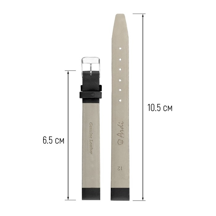 Ремешок для часов, женский, 12 мм, запряжник 65 мм, горт 105 мм, натуральная кожа, чёрный