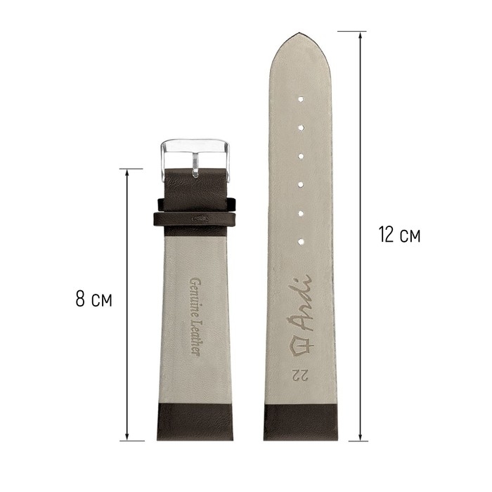 Ремешок для часов, 22 мм, запряжник 80 мм, горт 120 мм, натуральная кожа, коричневый