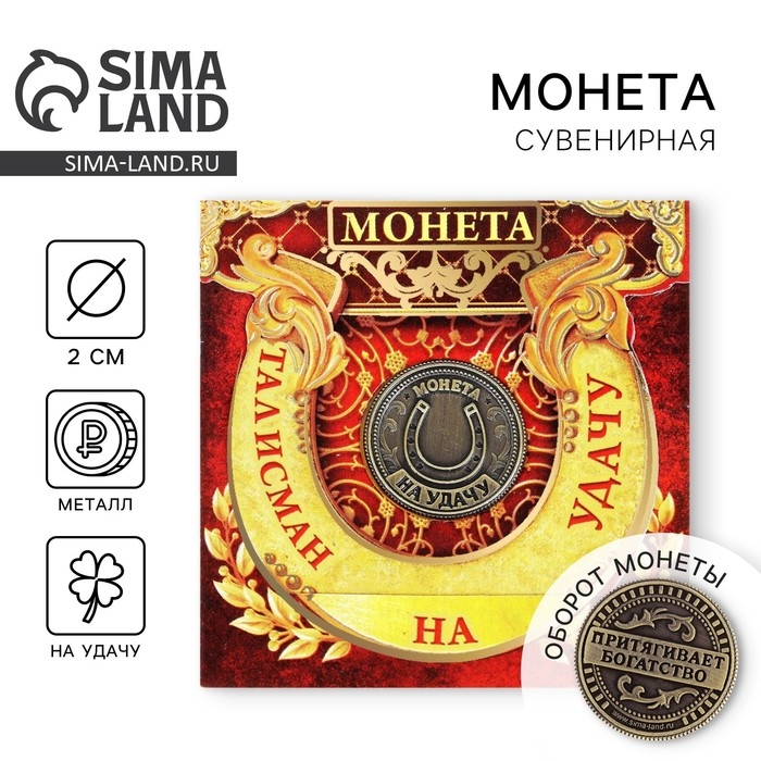 Монета сувенир «Талисман на удачу - притягивает богатство», d=2 см. станет символом Вашего финансового благосостояния! У неё есть 2 стороны: «орёл» — на удачу, а «решка» — на богатство. Изделие обрамлено эффектной упаковкой в виде мощного и надёжного сейфа.