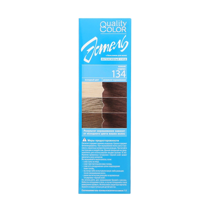 Стойкая гель-краска для волос Estel Quality Color российского бренда Юникосметик. В состав краски входит комплекс витаминов - С, В5, РР, действие которых направлено на укрепление и защиту волос от кончиков до корней. Витаминный комплекс повышает порог сопротивляемости волос к негативным внешним факторам, способствует восстановлению и обновлению клеток волоса. Гелеобразная консистенция краски очень удобна и позволяет проводить окрашивание в домашних условиях.