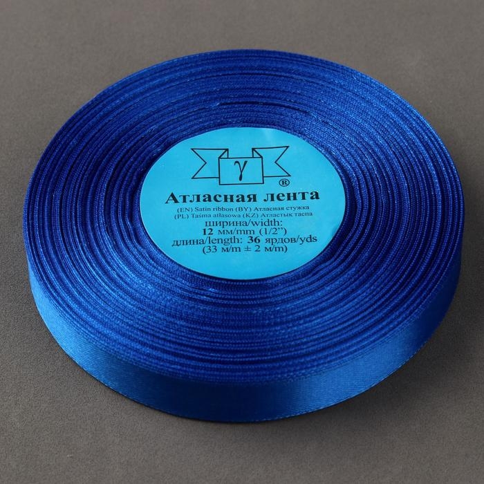 Лента атласная, 12 мм × 33 ± 2 м, цвет синий №040