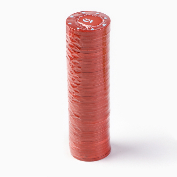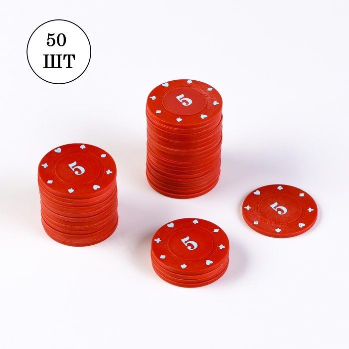 Набор фишек с номиналом 5, 50 шт, однотонные, красные