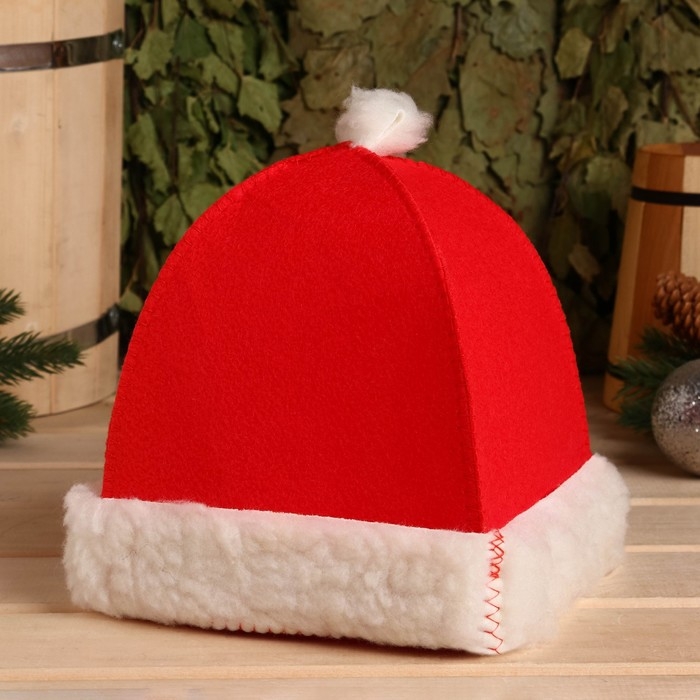 Шапка для бани и сауны Деда Мороза, красный — отличный новогодний подарок для страстного любителя бани. Она не только имеет оригинальный дизайн, но и защитит голову и волосы от перегрева в бане или сауне.